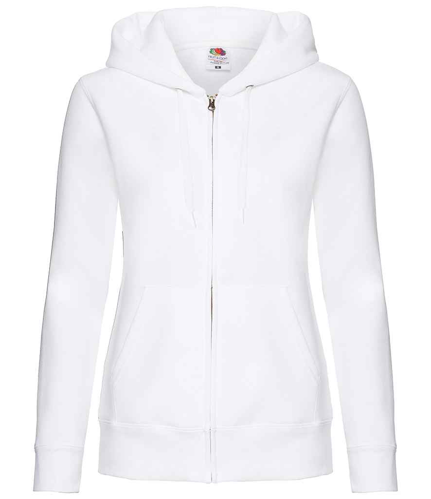 Have your logo/brand printed or embroidered on this Fruit of the Loom Premium Lady Fit Zip Hooded Jacket