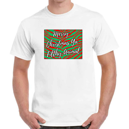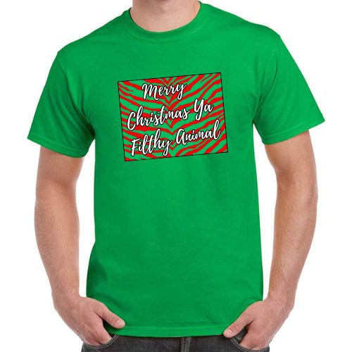 Get into the holiday spirit with our exclusive ‘Merry Christmas Ya Filthy Animal’ Christmas t-shirt!